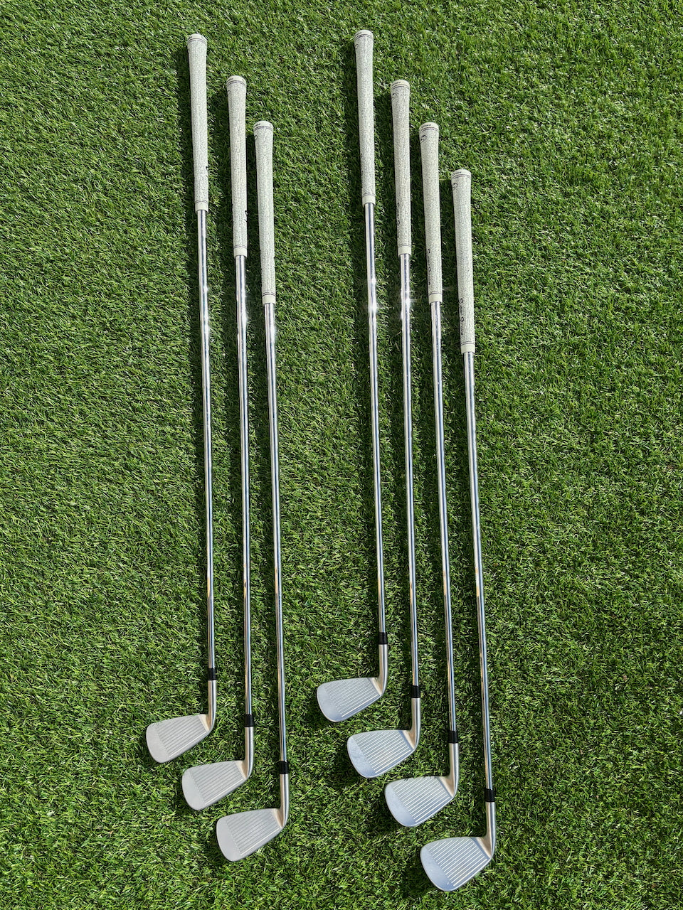 Very clean set. KBS $-Taper 130g X-Stiff shafts. Length of 7 iron shown. Brand new Standard SuperStroke STech Cord grips (have not played a round with them on)