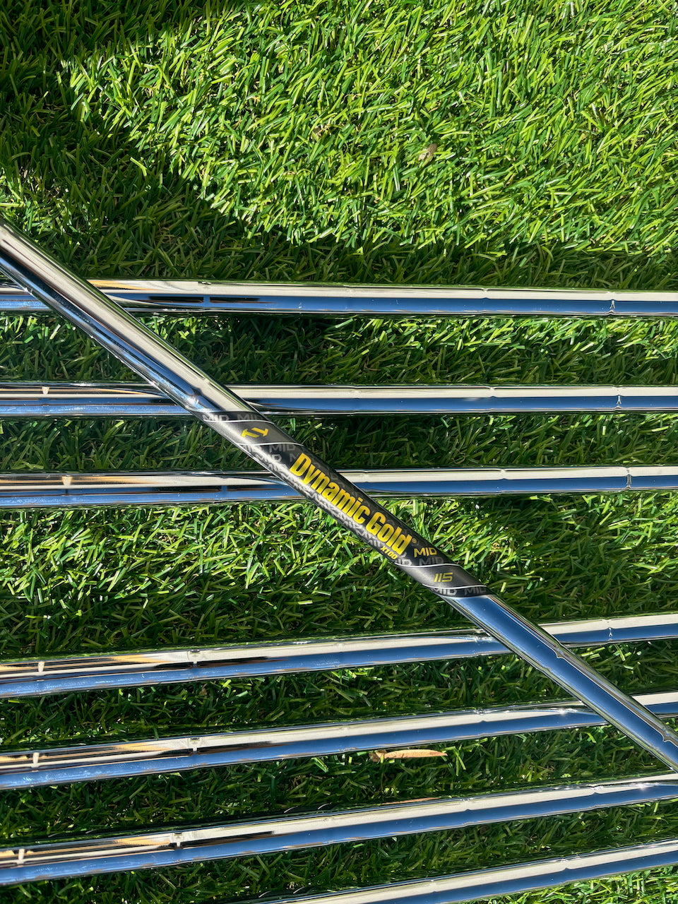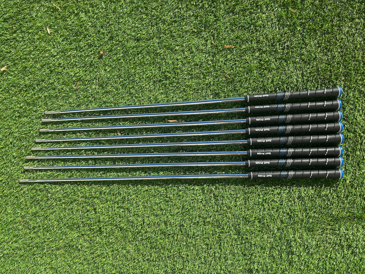 True Temper Dynamic Gold Mid 115 X100 Iron Shaft Pulls .355" 4-GW (8 shafts total). Golf Pride Midsize CP2 Wrap grips mint shape.